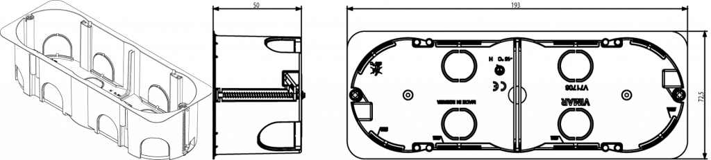 Главная » Каталог товаров » Розетки и выключатели VIMAR » Монтажные дозы и распределительные коробки » Встраиваемые дозы/подрозетники » 71706 (GW 850 °C) встраиваемая коробка-подрозетник на 7 модулей для гипсокартона