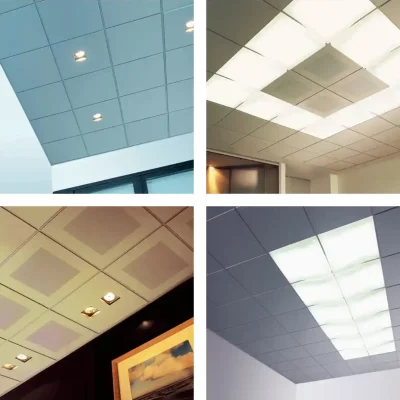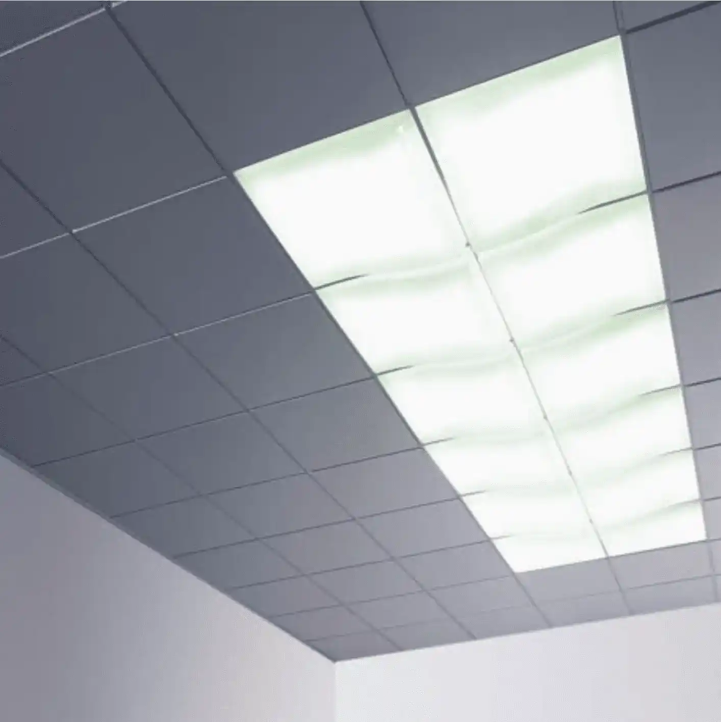 Стандартный размер — 600×600 мм, совместимый с любыми подвесными Т-системами.